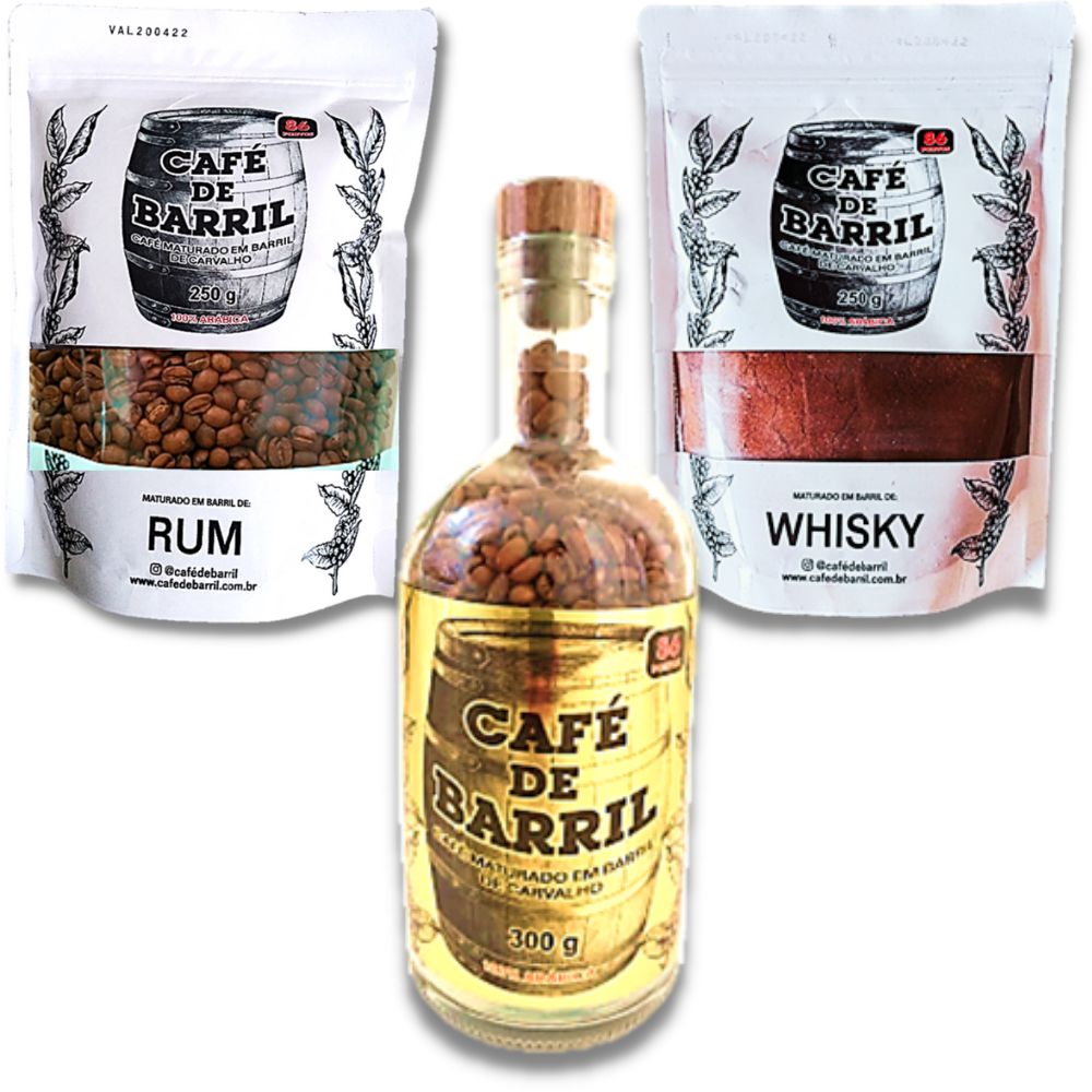Café especial torrado, maturado em barril de carvalho, usado anteriormente no envelhecimento de cachaça e whisky, durante aproximadamente 3 anos.